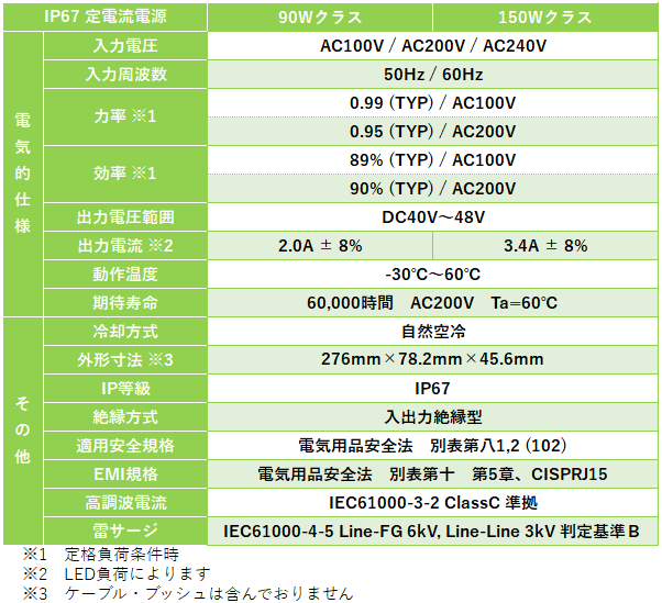 - 定電流電源 90W/150Wクラスをラインアップ